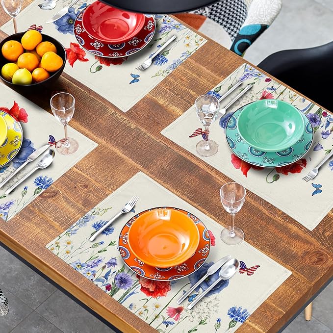 - Easy Care: Memorial day placemats can be washed by hand or machine, or wiped clean with a damp cloth. If there are stains on placemats, give them a quick wash and you can use them again, effectively extending the life of your dining table