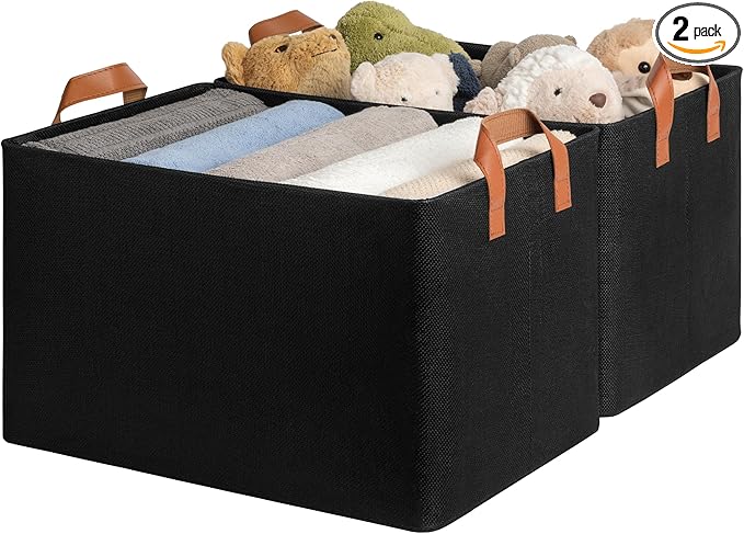 GRANNY SAYS Storage Baskets for Shelves, Closet Organizer Bins, Clothes Storage Bins with Metal Frame, Extra Large Baskets for Organizing and Storage, Collapsible, Black, 2-Pack