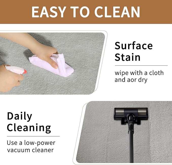 • 【EASY CLEANING 】- Machine Washable Area Rugs, simply vacuum with a hand-held vacuum in daily. If you want to do deeper clean, you can add some mild detergent and gently wash the Shaggy Velvet Area Rugs by hands. Then choose a site that's well ventilated, lay rug out or hang to dry naturally. Please do not expose it in the sun.