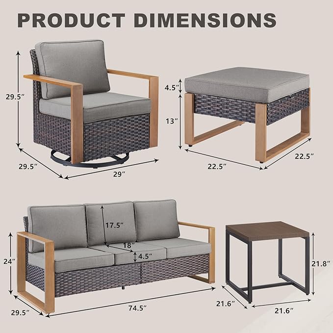 - Ultimate Comfort Experience:Experience unparalleled comfort with generous cushion dimensions: D24" x W23" x H4.8" for the seat and D17" x W23" x H6" for the backrest. The 24-inch seat depth and 6-inch thick back cushion create the perfect seating experience, making our wicker outdoor swivel rocker chairs ideal for relaxing afternoons or cozy gatherings with friends and family