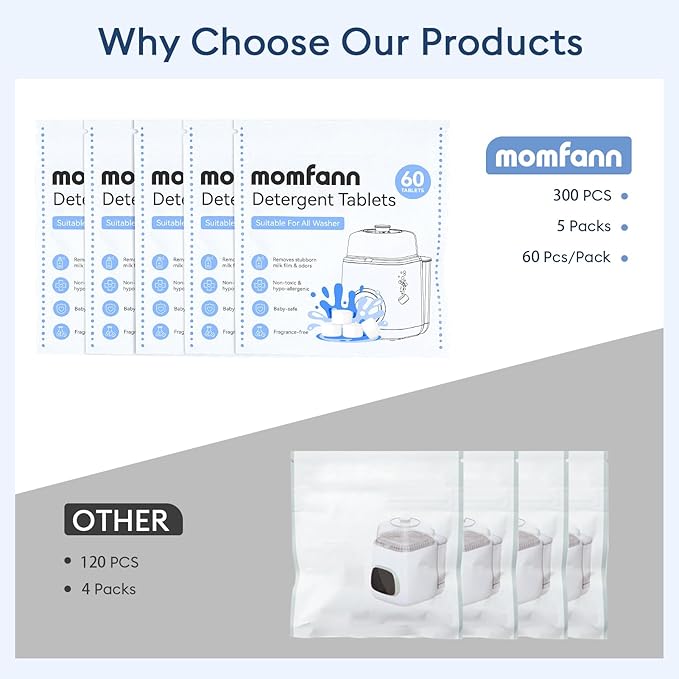 - 300 Tablets for Long-Lasting Use: 5 packs of 60 for continuous use; This value-packed supply means you'll always have the cleaning power you need, keeping your baby's bottles and accessories clean without frequent reordering.