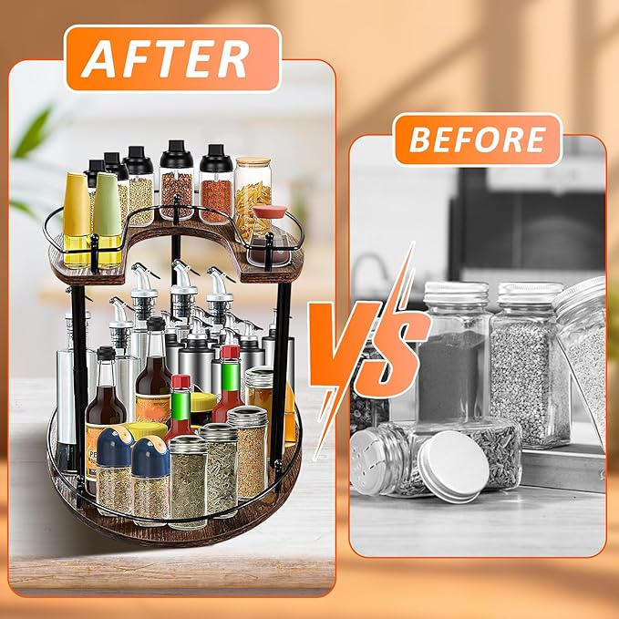 - 360° One-Spin Access System: Rotate the rotating spice organizer with a finger tap - all spices face forward instantly. No more digging through cluttered cabinets during cooking