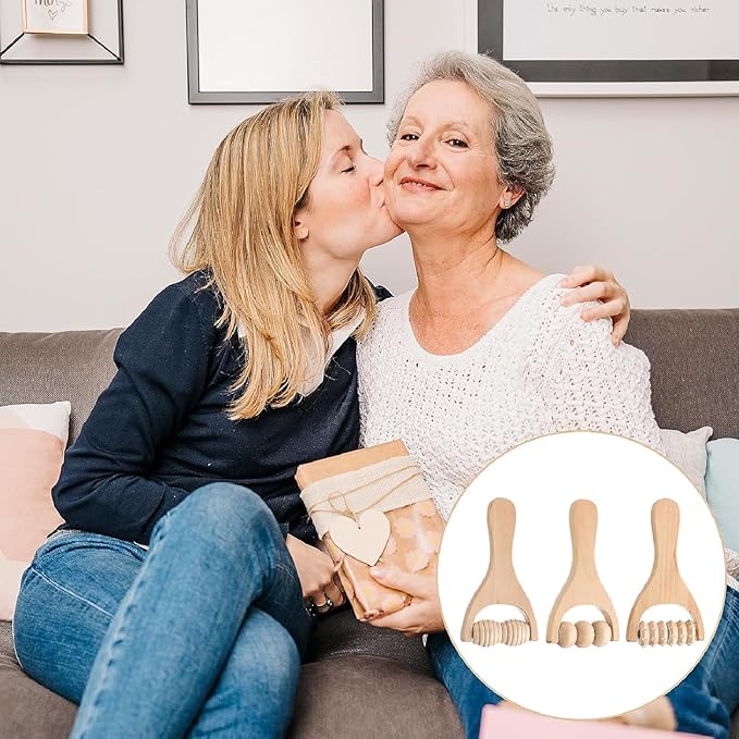 3Pcs Wooden Hand Massage Roller, Manual Wood Therapy Massage Tools Massager Roller for Relaxes Thigh, Leg, Hands Full Body Muscle Men Women Gift