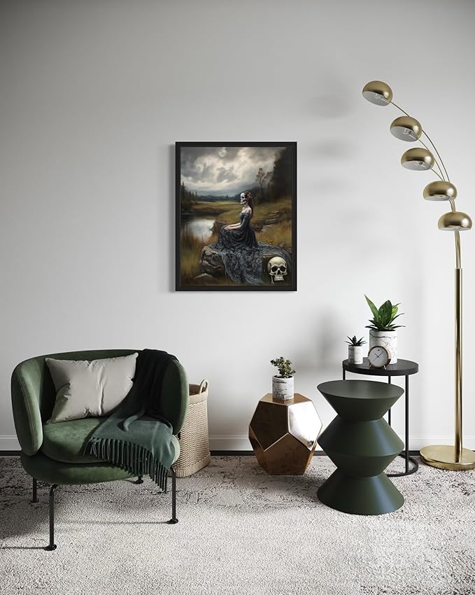 Widow Ghost Poster Art Print, Halloween Scary Vintage Wall Art Academia Spooky Painting Decoration for Horror Prints, Gothic Posters Bedroom Decor 89 (Widow Ghost, 16 x 20 inches, Black Frame)