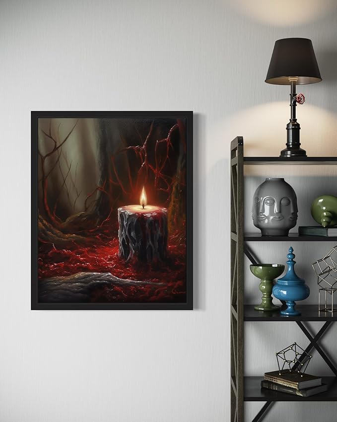 Gothic Candle Poster Art Print, Halloween Scary Vintage Wall Art Academia Spooky Painting Decoration for Horror Prints, Posters Bedroom Decor 89 (Gothic Candle, 11 x 14 inches, Black Frame)