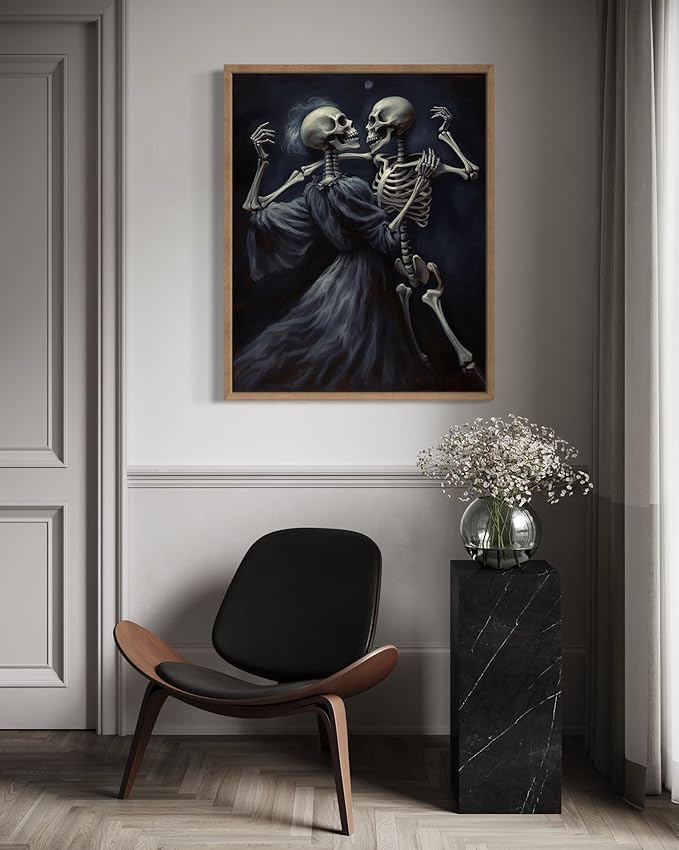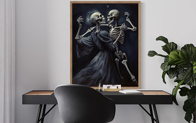 Dancing Skeleton Poster Art Print, Halloween Scary Vintage Wall Art Academia Spooky Painting Decoration for Horror Prints, Gothic Posters Bedroom Decor 89 (Dancing Skeleton, 11 x 14 inches, Wood Frame)