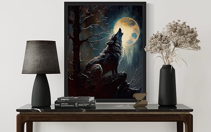Wolf howling Poster Art Print, Halloween Scary Vintage Wall Art Academia Spooky Painting Decoration for Horror Prints, Gothic Posters Bedroom Decor 89 (Wolf howling, 11 x 14 inches, Black Frame)