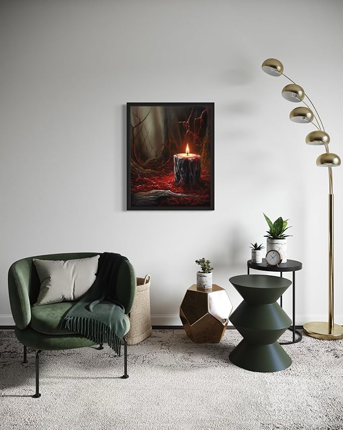Gothic Candle Poster Art Print, Halloween Scary Vintage Wall Art Academia Spooky Painting Decoration for Horror Prints, Posters Bedroom Decor 89 (Gothic Candle, 16 x 20 inches, Black Frame)