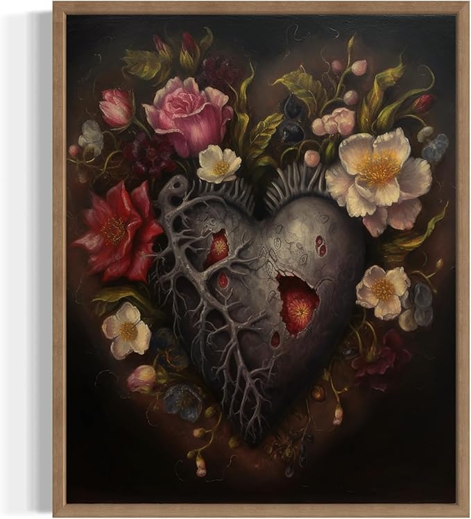 Gothic Heart Poster Art Print, Halloween Scary Vintage Wall Art Academia Spooky Painting Decoration for Horror Prints, Posters Bedroom Decor 89 (Gothic Heart, 8 x 10 inches, Wood Frame)