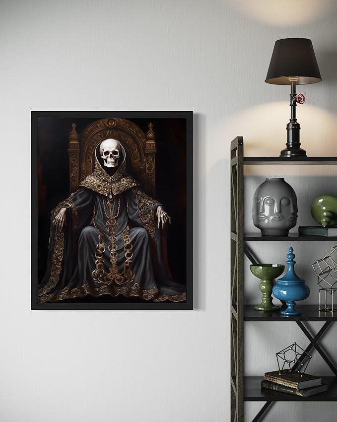 Skull King Poster Art Print, Halloween Scary Vintage Wall Art Academia Spooky Painting Decoration for Horror Prints, Gothic Posters Bedroom Decor 89 (Skull King 1, 11 x 14 inches, Black Frame)