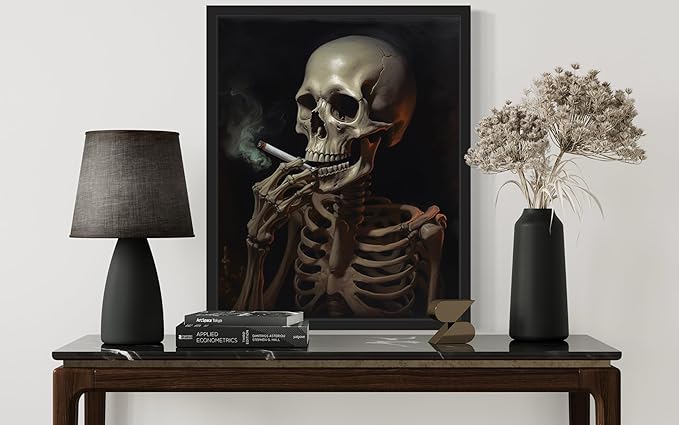 Skull Smoking Ciggarettes Poster Art Print, Halloween Scary Vintage Wall Art Academia Spooky Painting Decoration for Horror Prints, Gothic Posters Bedroom Decor 89 (Skull Smoking Ciggarettes, 8 x 10 inches, Unframed)