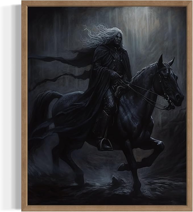 Black Dark Knight Poster Art Print, Halloween Scary Vintage Wall Art Academia Spooky Painting Decoration for Horror Prints, Gothic Posters Bedroom Decor 89 (Black Dark Knight, 8 x 10 inches, Wood Frame)