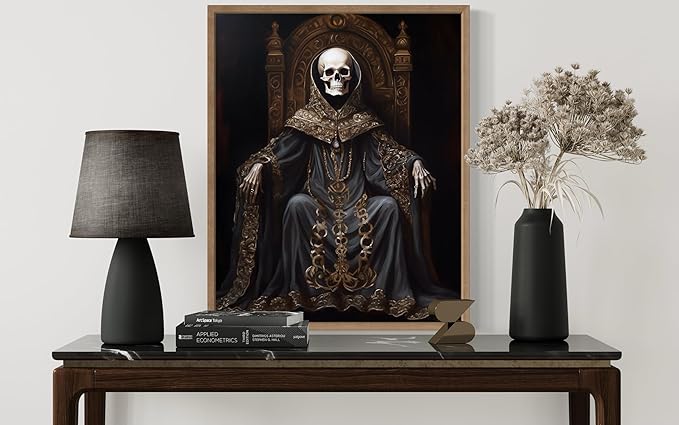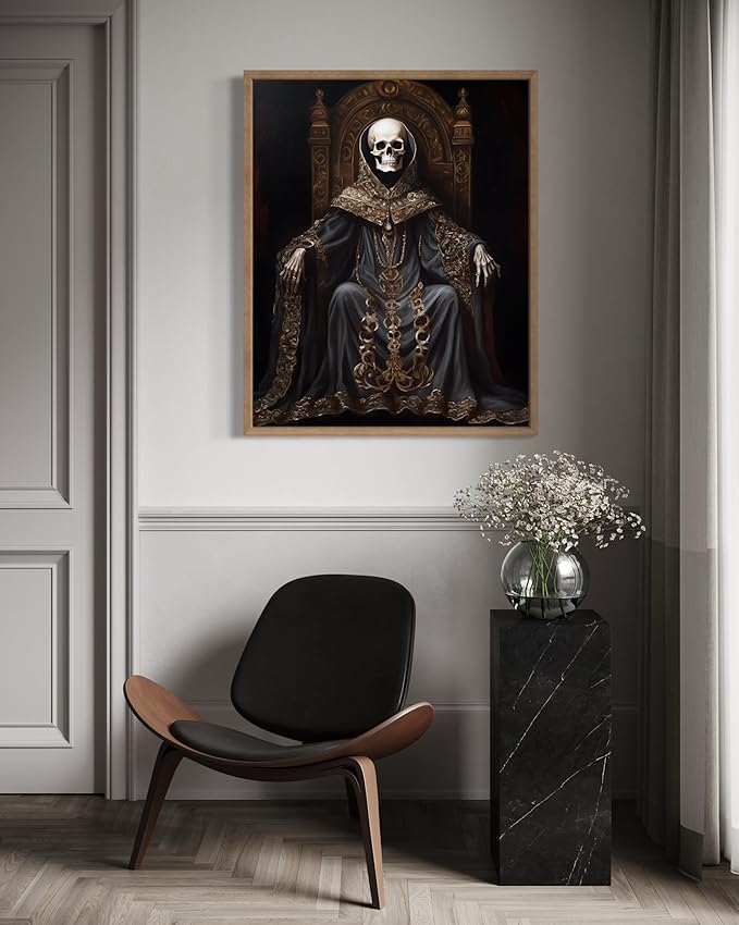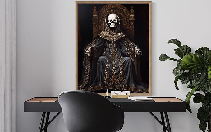 Skull King Poster Art Print, Halloween Scary Vintage Wall Art Academia Spooky Painting Decoration for Horror Prints, Gothic Posters Bedroom Decor 89 (Skull King 1, 11 x 14 inches, Wood Frame)