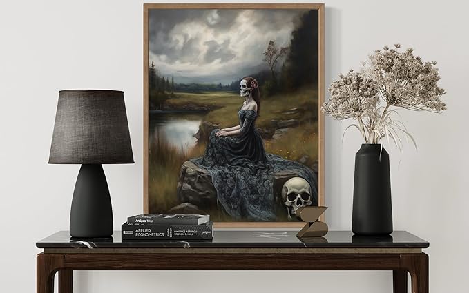 Widow Ghost Poster Art Print, Halloween Scary Vintage Wall Art Academia Spooky Painting Decoration for Horror Prints, Gothic Posters Bedroom Decor 89 (Widow Ghost, 8 x 10 inches, Wood Frame)
