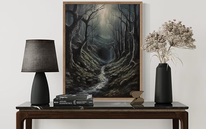 Dark Tunnel Poster Art Print, Halloween Scary Vintage Wall Art Academia Spooky Painting Decoration for Horror Prints, Gothic Posters Bedroom Decor 89 (Dark Tunnel, 11 x 14 inches, Wood Frame)