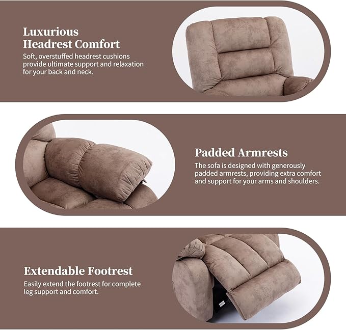 - 【Premium Comfort & Support】Stuffed with high-density foam, this recliner provides optimal softness and ergonomic support. Upholstered in durable, breathable fabric, it offers a luxurious feel while being and long-lasting. The sturdy construction ensures years of dependable use.