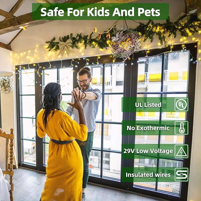 - Energy-Efficient and Safe: These low-voltage lights are eco-friendly and safe for both indoor and outdoor use, so you can enjoy a dazzling display without worrying about high energy bills or safety hazards.