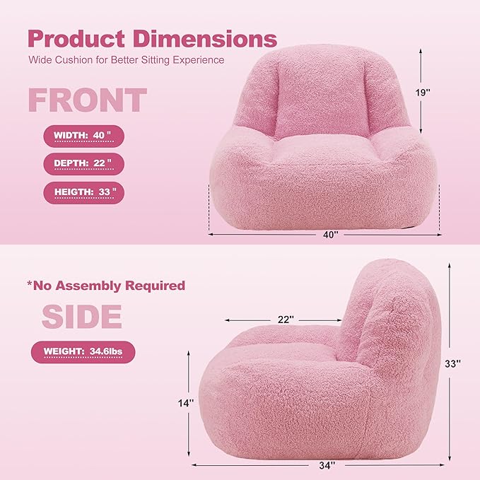 - No Assembly: This sherpa accent chair is pre-filled,you don't need to fill it yourself. It is shipped compressed and will expand right after you open the package. Simply cut the package open and enjoy the amazing bean bag sofa,saving you time and effort, enjoying it at once. If you have any questions, please do not hesitate to tell us, we are at your service 24 hours a day!