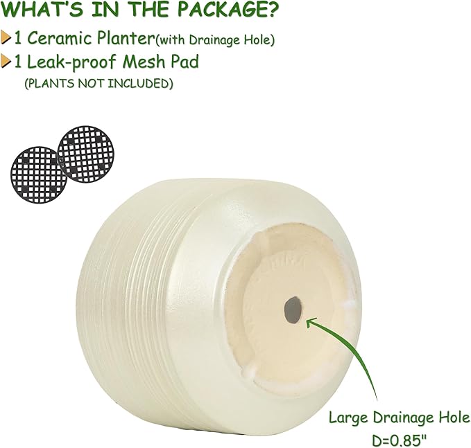 - 【Drainage Hole for Indoor & Outdoor Use】:Built-in drainage hole helps prevent root rot and supports healthy growth in large houseplants. Works as both an indoor ceramic planter and an outdoor pot for patio, garden, or balcony setups.