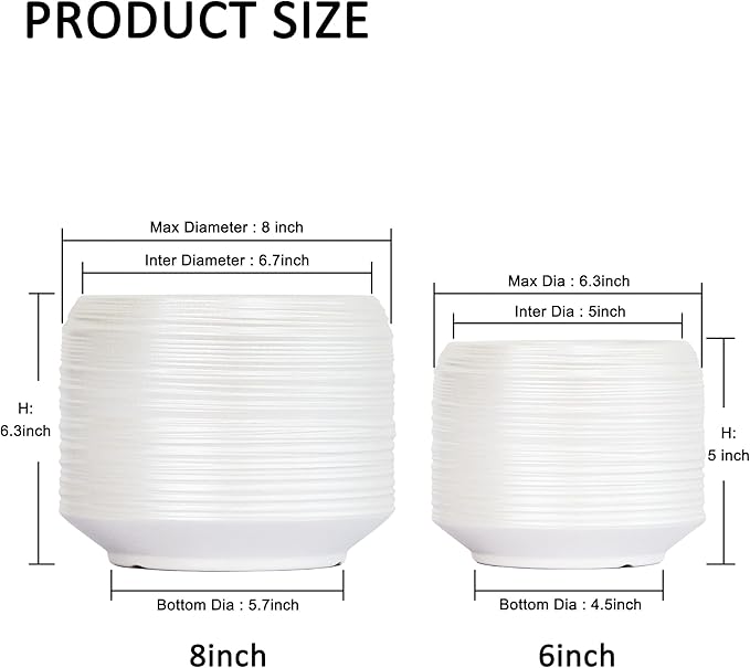 - 【Two Sizes for Versatile Planting】:Includes one 8 inch and one 6 inch ceramic pot with drainage holes. These potting containers for plants are ideal for medium house plants, herbs, or indoor garden displays.