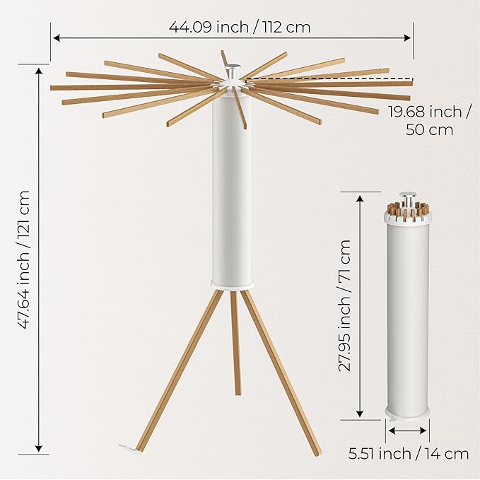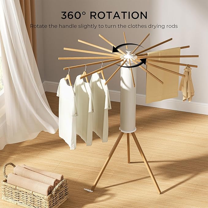 - 【Efficient & Stylish】Every home needs the thoughtful, multipurpose tripod clothes drying rack since it is both practical and fashionable. It is stable because to its tripod construction, and it is easy to fold up for storage; A real collaborator when it comes to getting laundry.