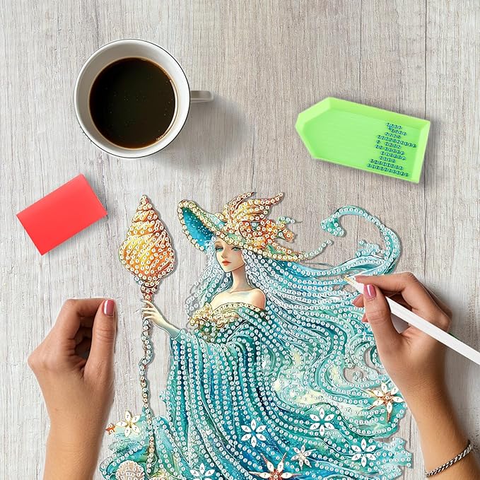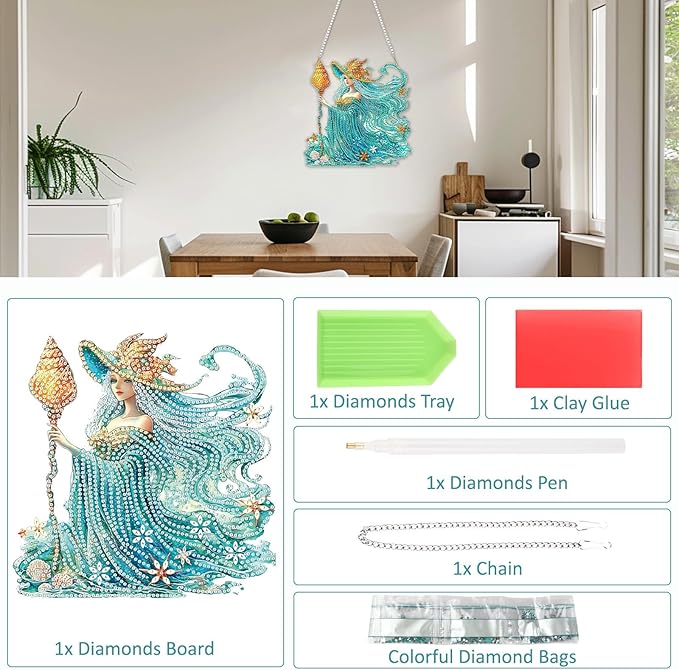 SENQAO Fairy Diamond Art Hanging Kit for Adult, Special Shaped Rhinestone, Double Sided DIY Acrylic Diamond Art Painting Window Pendants Home Garden Wall Hanging Kits Hanging Ornament (Shell Witch)
