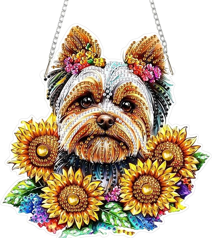 SENQAO Dog Diamond Art Hanging Kit for Adult, Special Shaped Rhinestone, Double Sided DIY Acrylic Diamond Art Painting Window Pendants Home Garden Wall Hanging Kits Hanging Ornament (Sunflower)