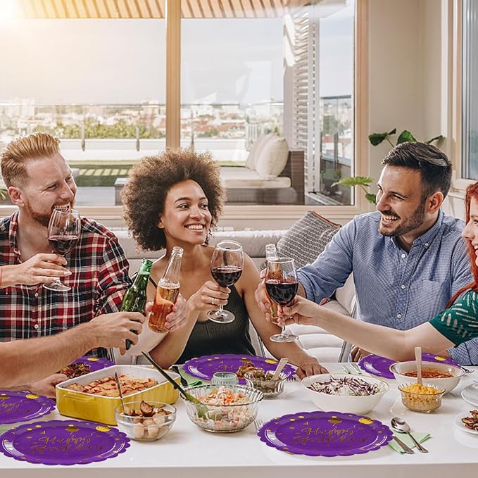 - 【MEMORABLE OCCASIONS】: Purple birthday plates is great for every ages, the color purple makes people feel mystical and joyful, suitable for 16st birthday party, 18th birthday party, 60th birthday party, 80th birthday party, and other ages of you, whether it's a boy, a girl, a man, or a woman you can brighten up the table with purple birthday paper plates, now spread your joy to your guests!
