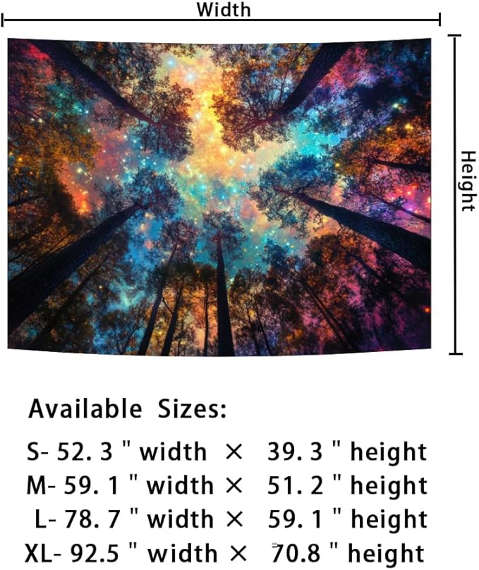 Amhokhui Colorful Forest Tapestry Nature Landscape Tapestry Mysterious Sky Tapestries Psychedelic Aesthetic Starry Night Tapestries Trippy Galaxy Space Wall Hanging Decor for Home