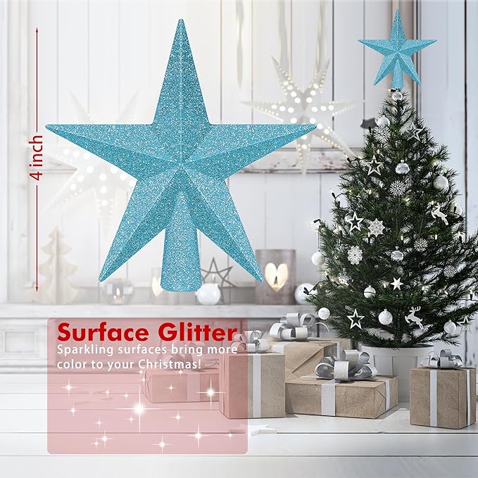 1PCS Tree Star Topper, Blue 4" Christmas Tree Topper Decorations, Glitter Shatterproof Mini Bethlehem Star Tree Topper Decor, Waterproof Star Tree Topper for Christmas Holiday Indoor/Outdoor Ornament