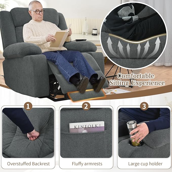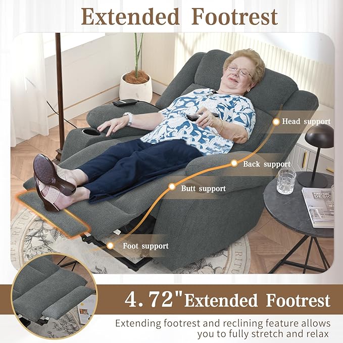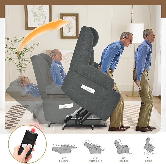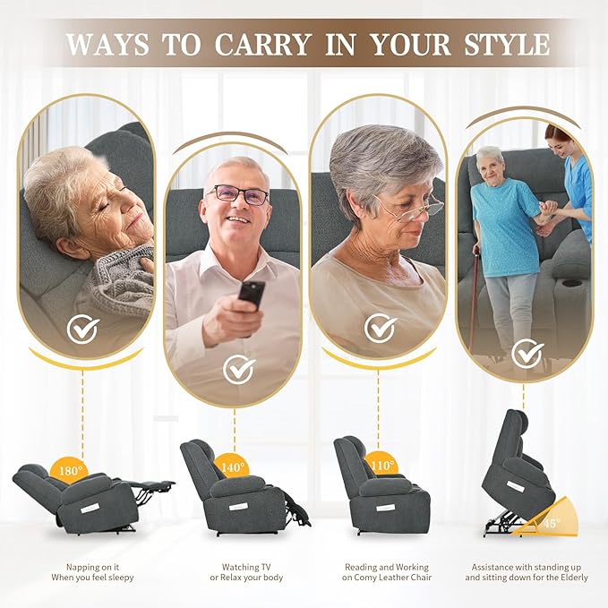 - Gentle Power Lift Assist: Smooth 45°-160° reclining with remote-controlled lift mechanism helps seniors/limited mobility users stand up safely. No more straining to rise from seated position!