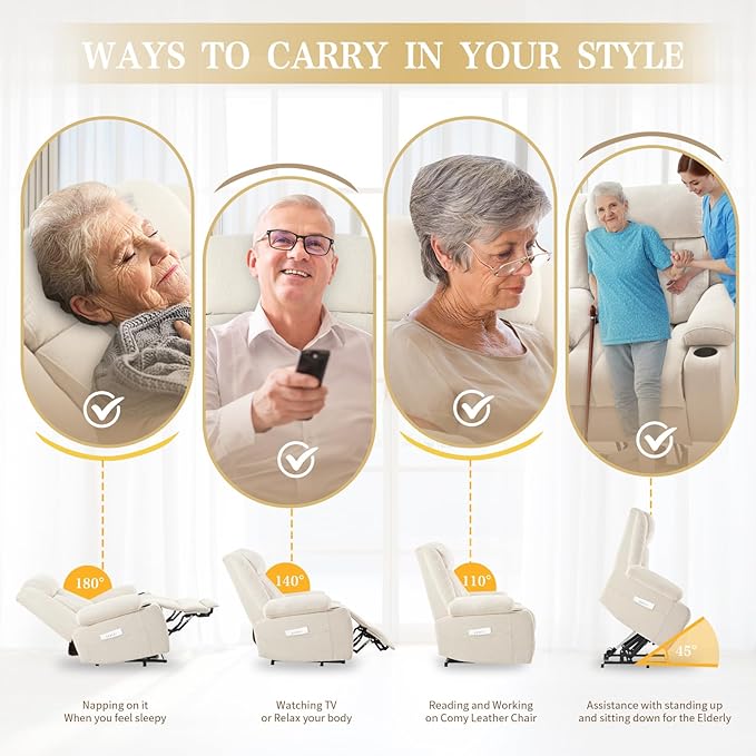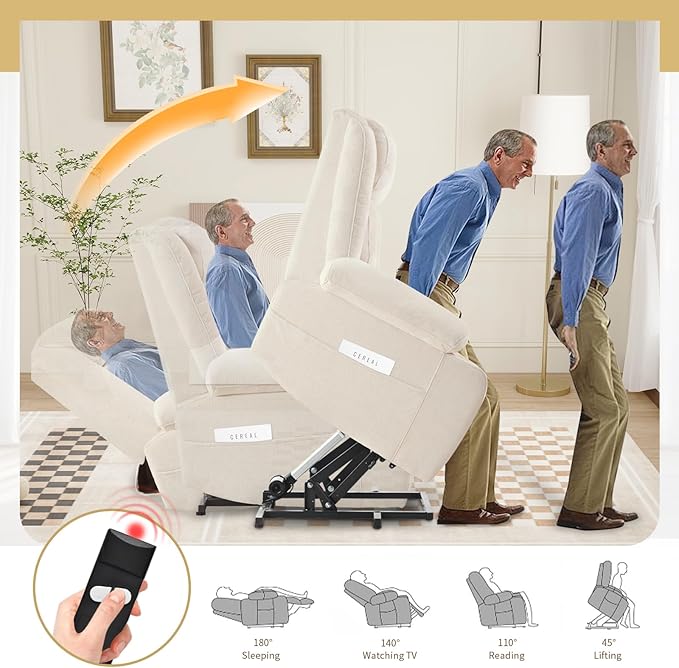 - Gentle Power Lift Assist: Smooth 45°-160° reclining with remote-controlled lift mechanism helps seniors/limited mobility users stand up safely. No more straining to rise from seated position!