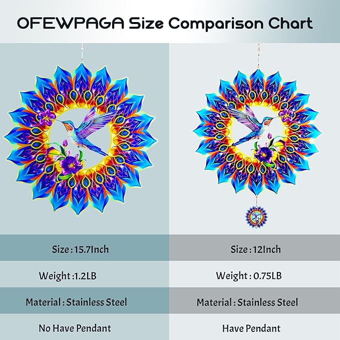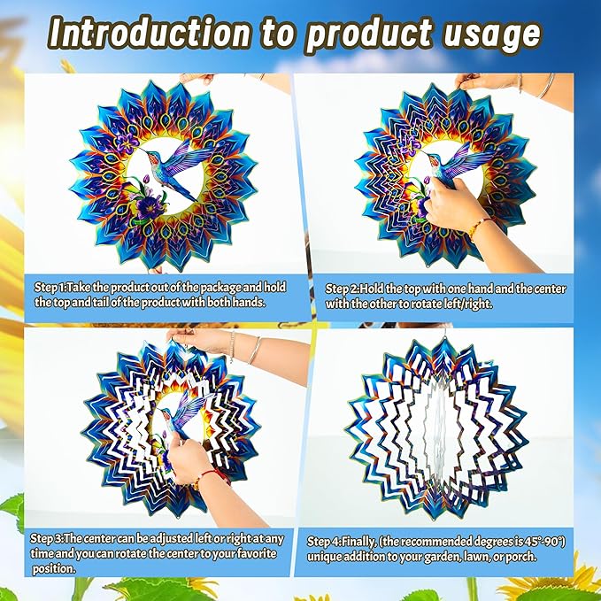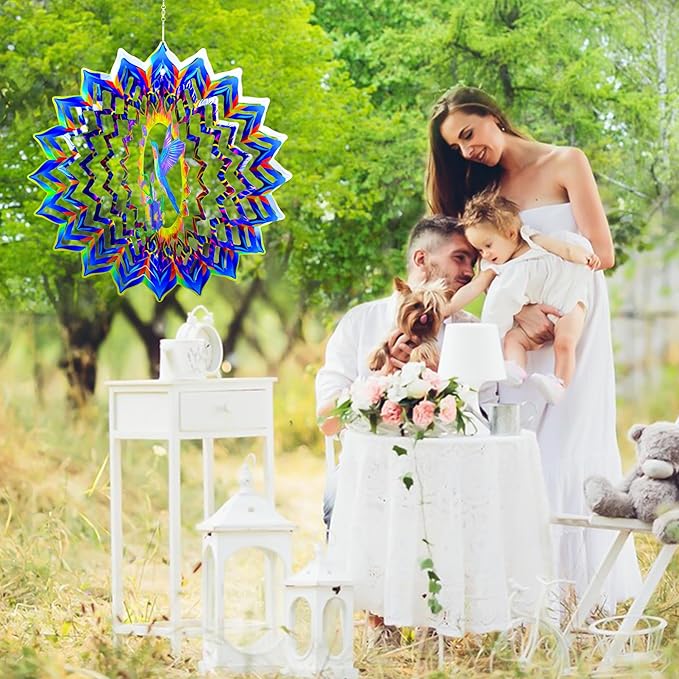 - 【Product Introduction】: This upgraded 15.7 x 15.7 inch 3D wind spinner offers a larger, more eye-catching design than our classic 12-inch model. Made of high-quality stainless steel with precision cutting and advanced PUV printing, it features a vivid 3D hummingbird shape that adds dynamic charm to any outdoor space.