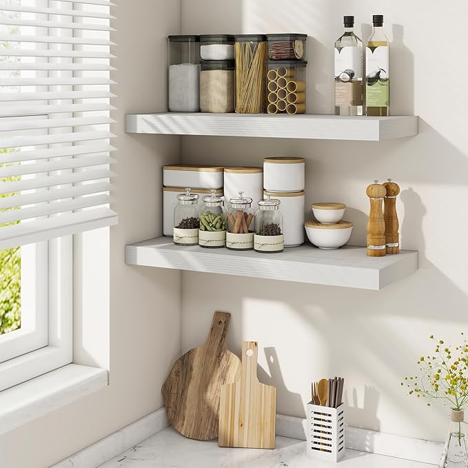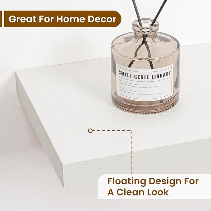 - Timeless Design for Any Room: Elevate your décor effortlessly! The classic retro texture of these floating shelves complements bathroom, bedroom, kitchen, living room or even office space. Neutral tones blend with existing furniture, adding warmth without clashing