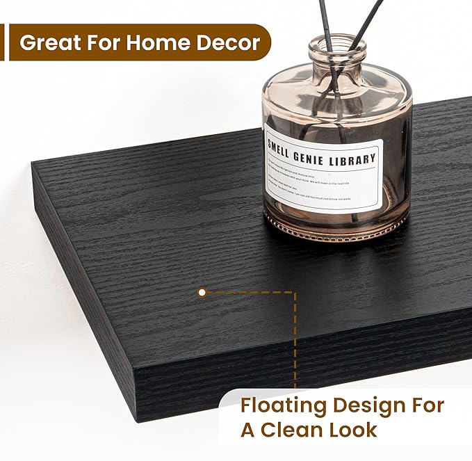 Fun Memories 24 Inch Floating Shelves for Wall, 9 Inch Deep Black Rustic Wood Wall Mounted Shelves for Bathroom, Kitchen, Living Room, Set of 2