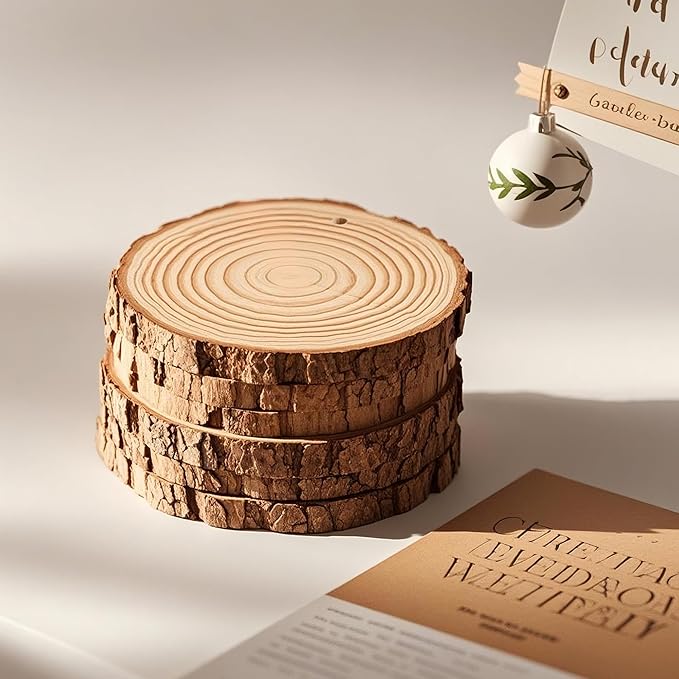 - Ready-to-Hang Design – Each 3.2-4" Wood Slice Has 2 Smooth Holes (3mm), No Drilling Needed – Start Crafting in 1 Minute!