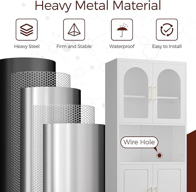 - 【Easy Assemble】Our pantry cabinets come with clear and complete parts and detailed installation instructions. One person can also assemble it quickly. Upgrade your kitchen storage with metal pantry cabinet