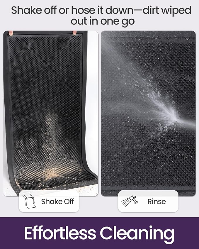 - Easy to Clean: Simply shake off dust and debris for daily maintenance. For a deeper clean, use a hose to rinse the mat to remove mud and dirt. Always dry in well-ventilated areas. Easy upkeep for busy households or entrances