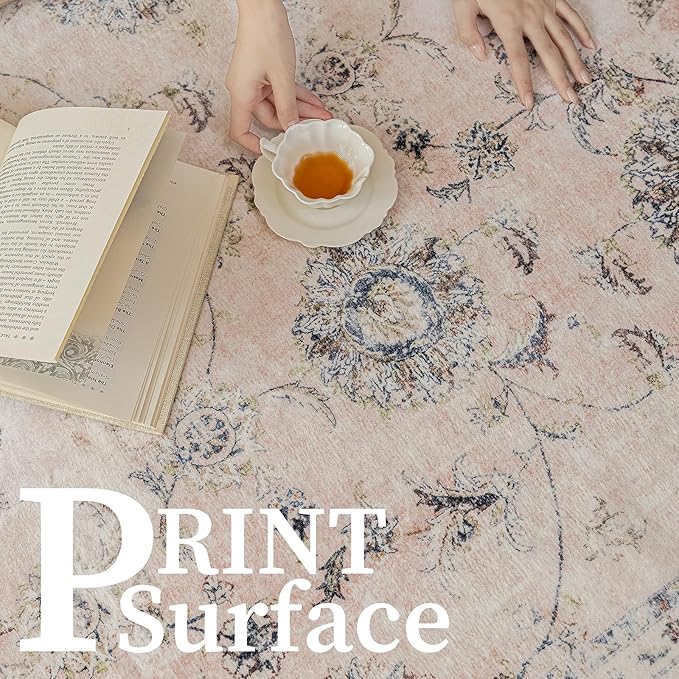 - Romantic Pink Style: This 5’x7’ area rug enchants with a soft vintage pink floral motif, effortlessly blending timeless elegance with a dreamy, romantic palette. The muted blush tones, gently kissed by subtle distressed details, lend an air of delicate femininity—ideal for shabby chic, French country, or modern farmhouse interiors