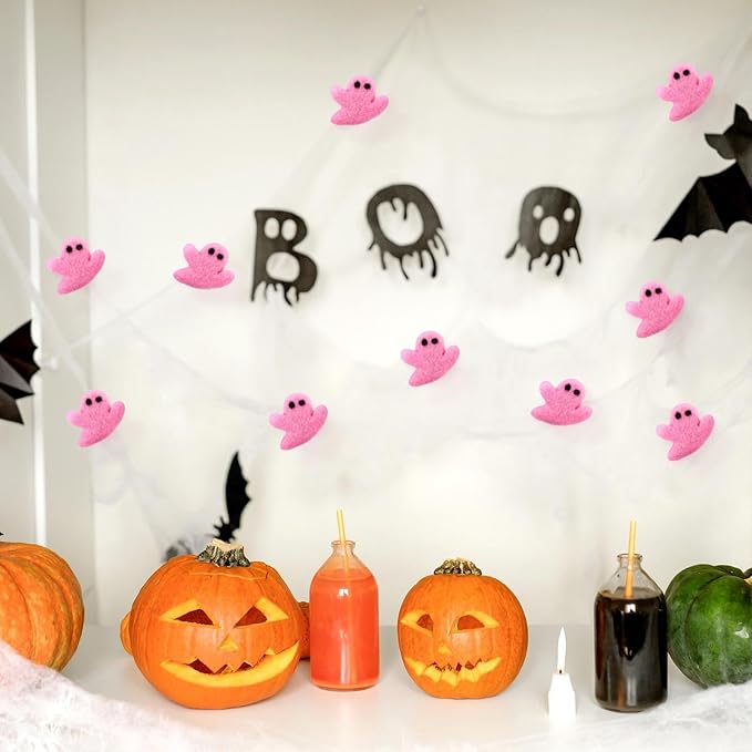 24 Pcs Halloween Felt Ghosts Wool Felted DIY Ornament Ghost for Halloween Party Decoration Home Indoor Outdoor Supplies(Pink)
