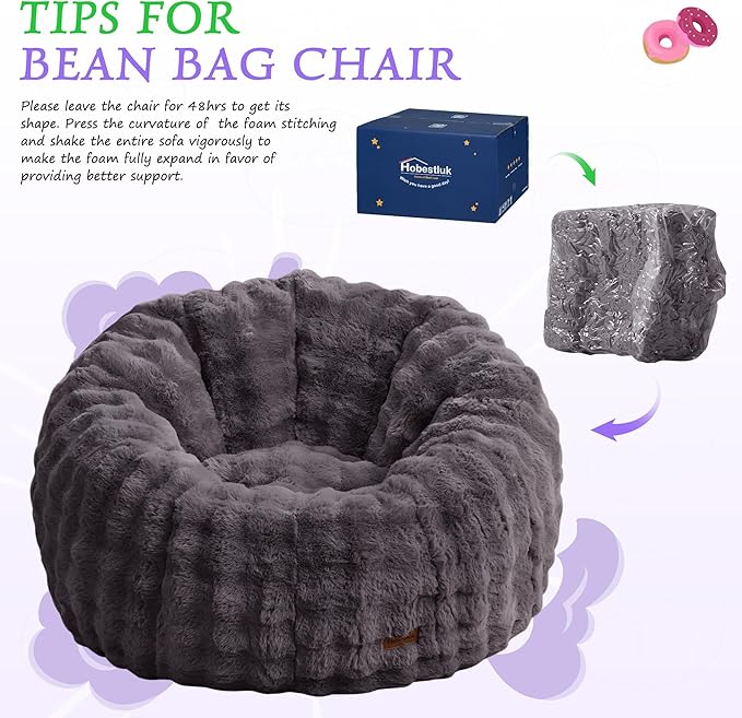 - Convenient and No-Assembly: Experience seamless setup with this bean bag chair, including filler.Simply open the compressed package and let the huge bean bag expand over 48 hours. Once fully expanded, you can recline and indulge in a delightful experience.