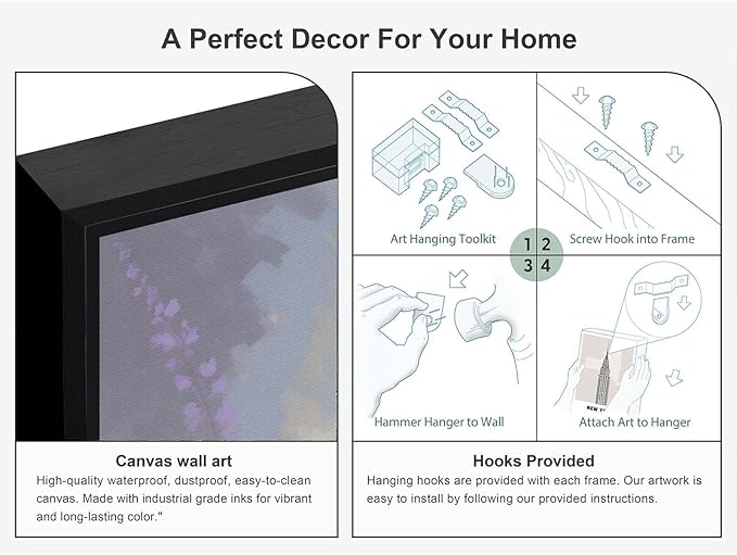JFHCQJPK Country wildflower witch canvas print halloween mashup art witch purple decoration bohemian elegant art poster24x36in Metal blackFramed