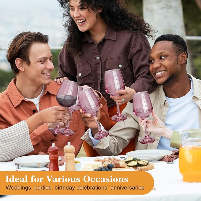 - 【Elegant Pink Wine Glasses 】Glazvia Pink wine glasses set of 6 comes in a variety of stunning shades including 6 pink wine glasses. These wine glasses are perfect for any occasion, whether it's a casual family gathering, a formal dinner, or a fun wine tasting event, the beautiful Pink glassware add a pop of color to your table setting and create an elegant atmosphere.