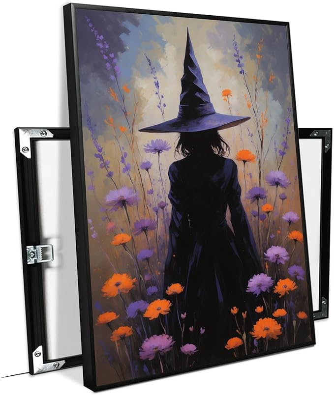 JFHCQJPK Country wildflower witch canvas print halloween mashup art witch purple decoration bohemian elegant art poster12x16in Metal blackFramed