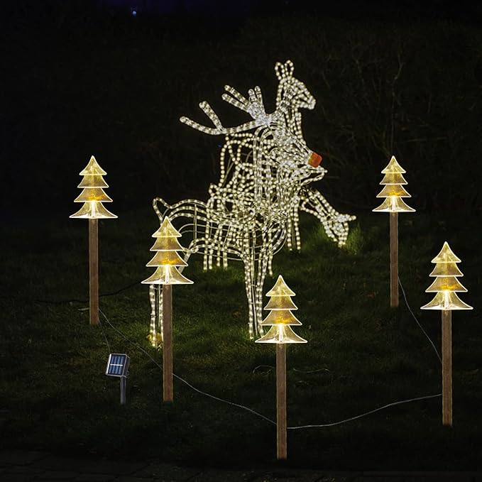 - 【Cute Winter Yard Decor】This walkway light has a tree themed exterior, and each light is equipped with built-in LED lights, creating a bright road and sharing the joyful atmosphere of Christmas with neighbors