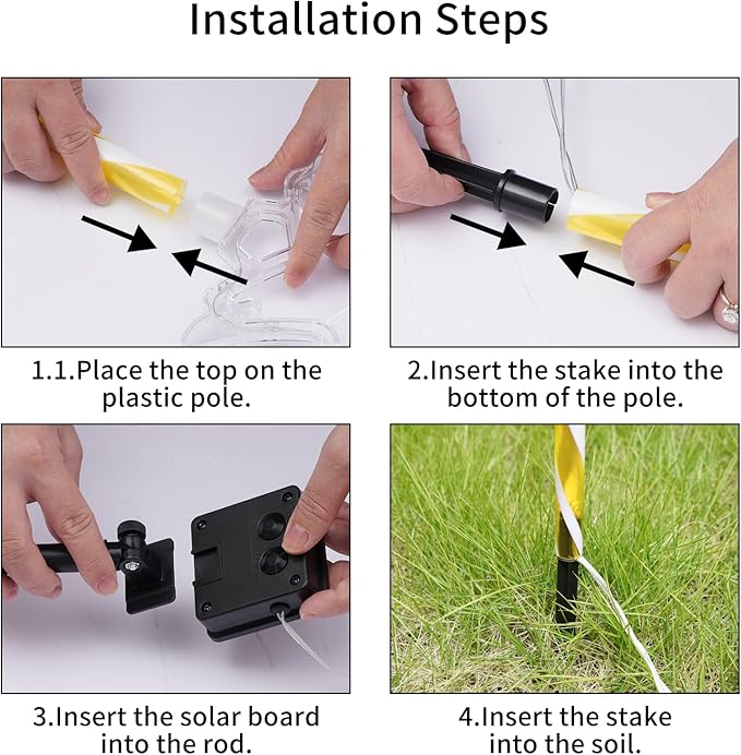 - 【8 Lighting Modes】Our Solar Garden Lights are accompanied by eight different lighting methods(Combination/In waves/Sequential/Slo-Glo/Chasing/Flash/Slow fade/Twinkle/Flash/Steady on) to meet your different needs
