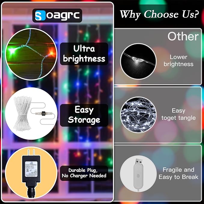 - Upgraded Durability for Everyday Use - Soagrc curtain string lights are crafted with enhanced copper wire and high-quality LEDs to ensure stronger durability. Tangle free and stable, they’re ideal for everyday use from dressing up your bedroom wall to adding a soft glow behind your reading nook or vanity mirror