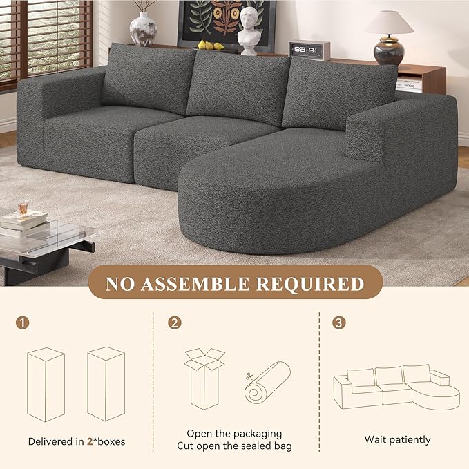 - NO ASSEMBLY REQUIRED: "Say Goodbye to Furniture Setup Hassles!" Delivered as a sofa in a box, this convertible sofa bed is vacuum-packed for easy handling. Once unwrapped, it “pops” into shape, needing just a few gentle pats to enhance its resilience and fluffiness. Fully restores within 72 hours for the best lounging experience.