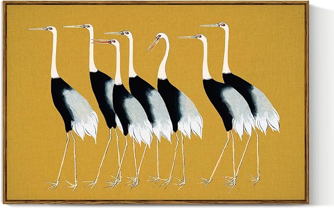 VIYYIEA Framed Wall Art Decor for Living Room Seven Cranes Art Wall Decorations Canvas Prints Vintage Painting Pictures Rustic Bathroom Decor Farmhouse Artwork for Bedroom Kitchen Office - 36L x 24W