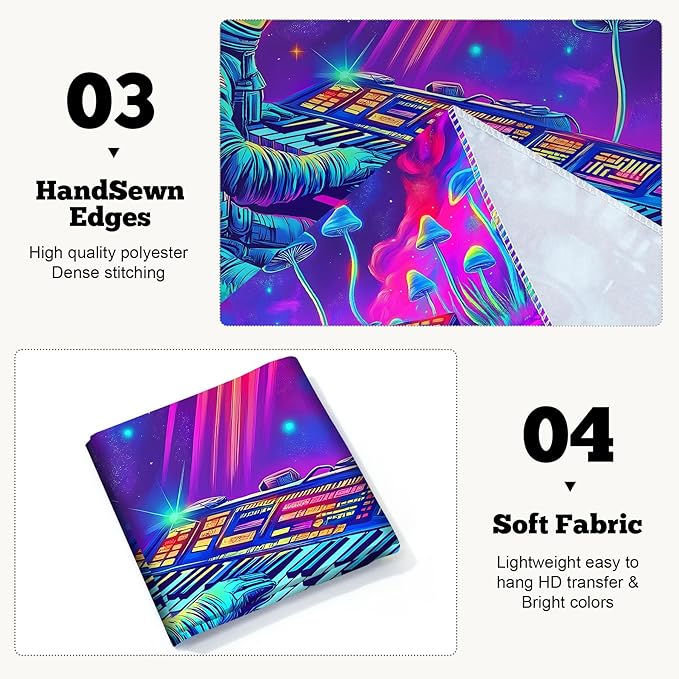 - Versatile Tapestry - With its durable materials and unique design, this blacklight tapestry can serve as a wall hanging tapestry, indie room tapestry, curtain tapestry, dorm room tapestry, ceiling tapestry, bedroom tapestry, glow-in-the-dark artwork or even a picnic blanket.
